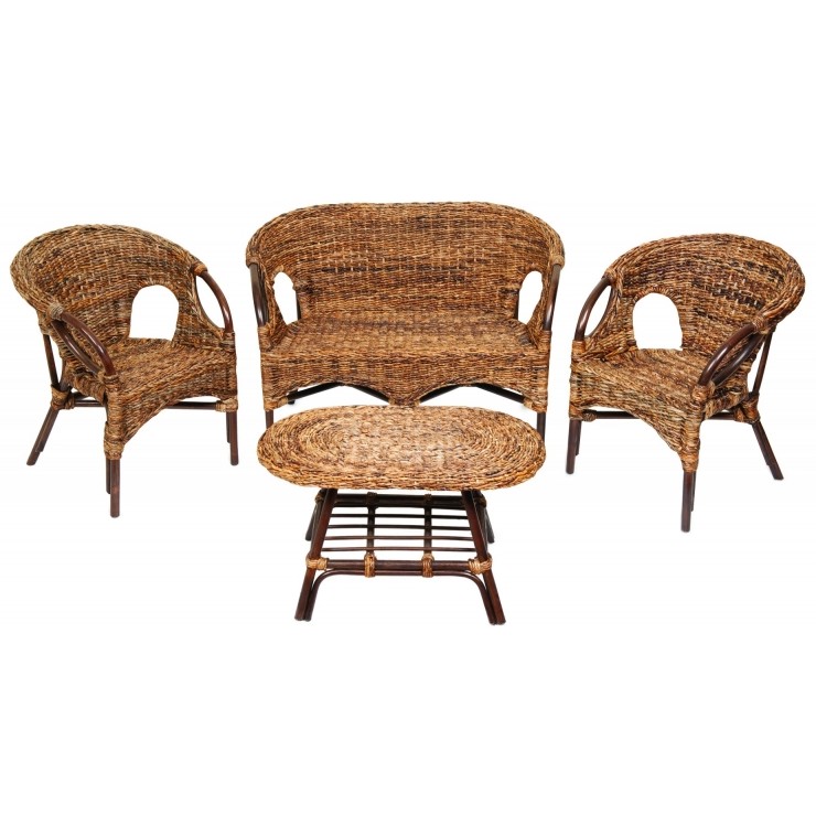 Комплект "Мандалино", изготовленный из натурального ротанга - это отличное решение для Ваших летних веранд и садовых площадок. Ротанговый каркас и оригинальное основание, сплетенное из листьев бананового дерева, обеспечивает изделию не только прочность, но и неповторимый стиль. Данная модель особенно удачно впишется в интерьер Вашего загородного дома или дачи.